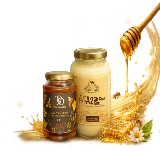 Pure A2 ghee and raw honey that fuel your day the natural way.
